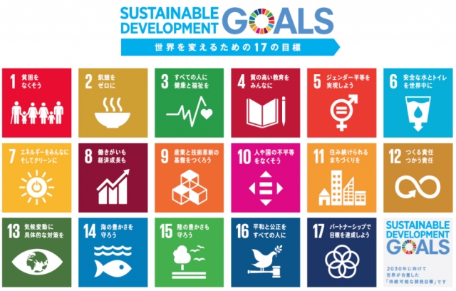 「 Sustainable Development Goals(持続可能な開発目標)」の略称であり、2015年9月に国連で開かれたサミットの中で世界のリーダーによって決められた、国際社会共通の目標です。